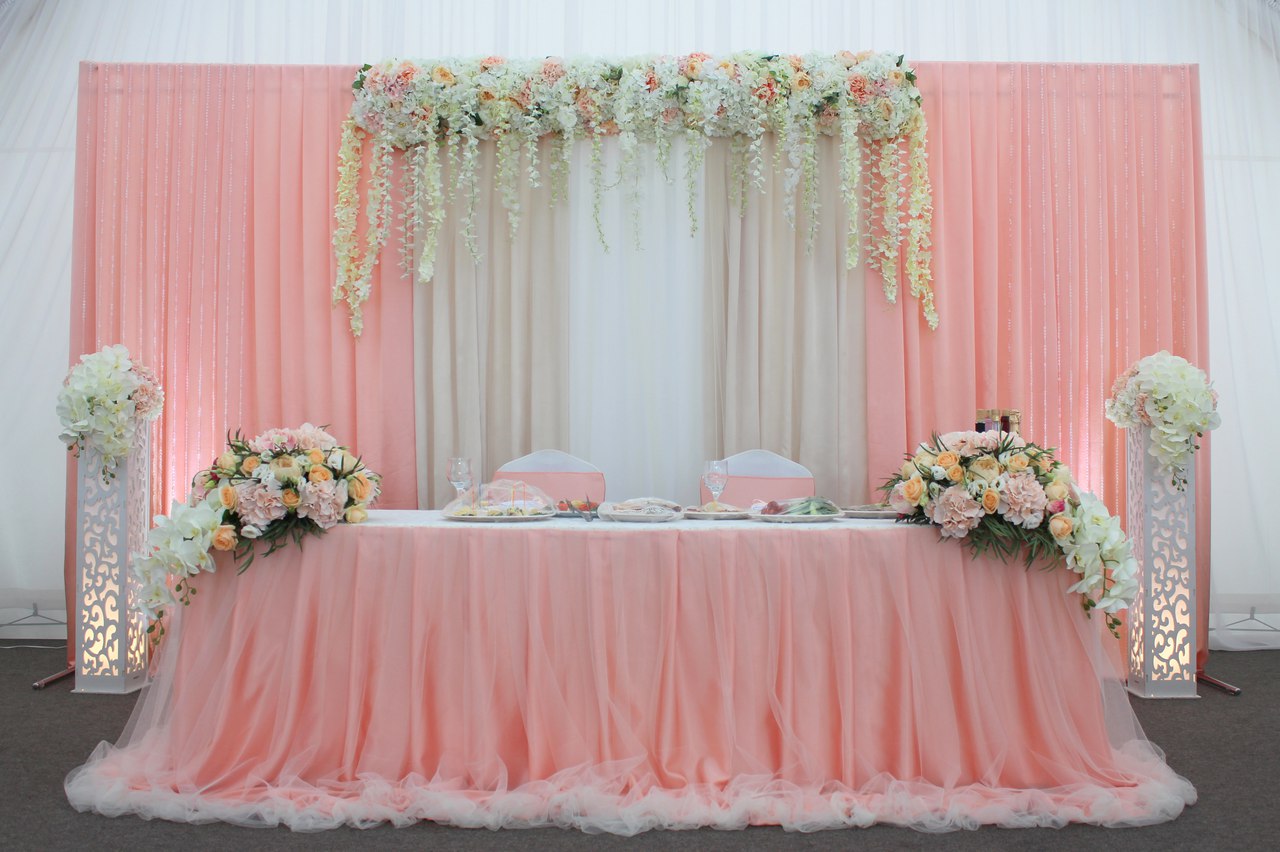 Оформление стола молодоженов тканью на 2 - 4 персоны.